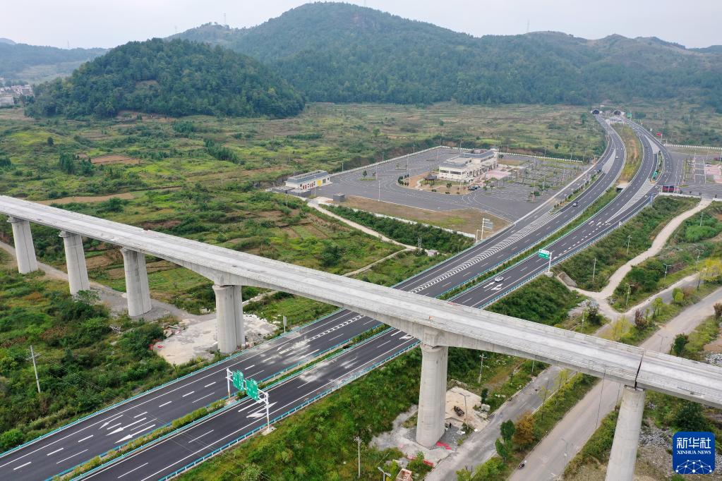 10月6日,由中铁十一局承建的贵南高铁拉干双线特大桥在紧张建设(无人机照片)。贵(阳)南(宁)高铁是我国“八纵八横”高速铁路主通道包头至海口通道的重要组成部分,设计时速350公里。
