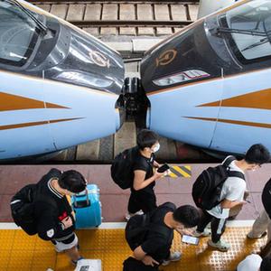 10月6日,刚下车的旅客在南京火车站准备出站。