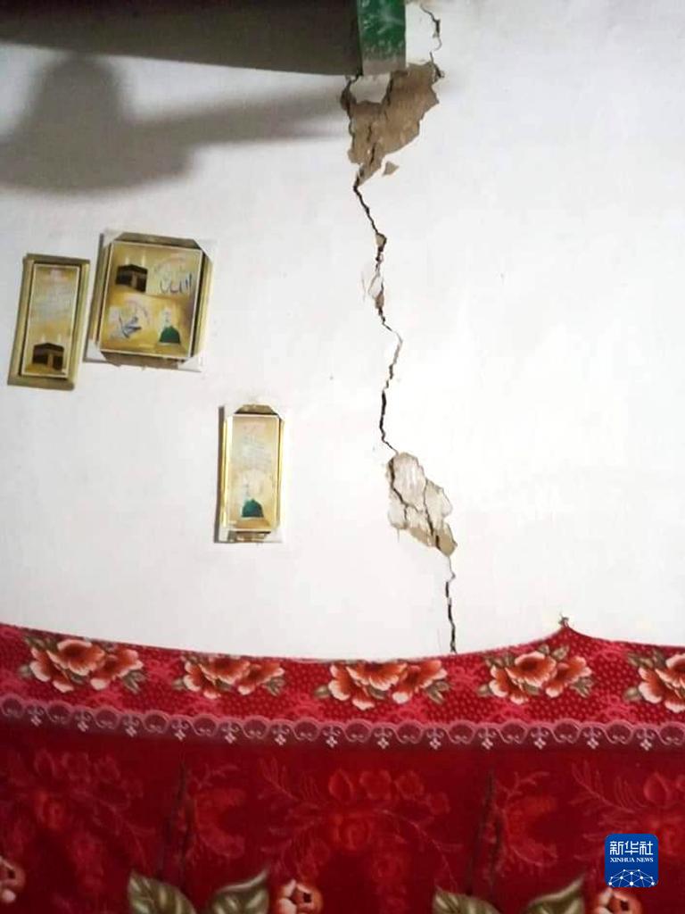 10月7日,巴基斯坦俾路支省赫尔奈地区的一处房屋被地震破坏(手机拍摄)。