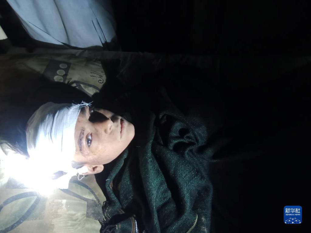 10月7日,在巴基斯坦俾路支省赫尔奈地区,一名在地震中受伤的男孩在一所医院外接受治疗(手机拍摄)。