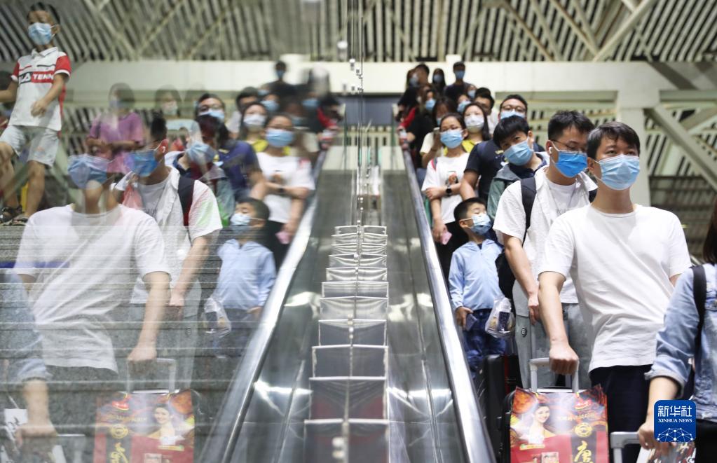 10月7日,旅客在湖南衡阳东站进站通道有序进站乘车。