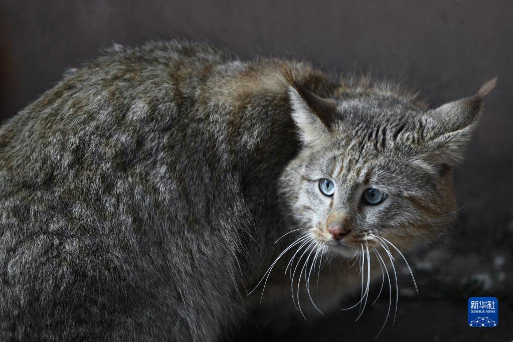 这是5月1日在西宁野生动物园拍摄的一只人工救助的荒漠猫。