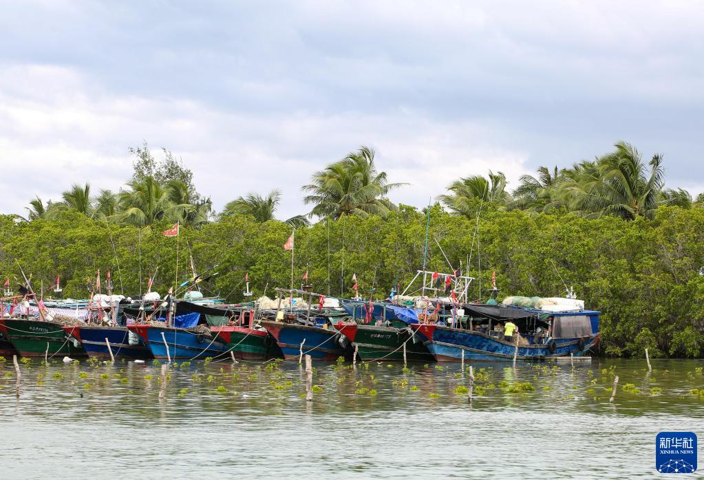 10月7日,渔民将船舶停靠在海南三亚铁炉港。