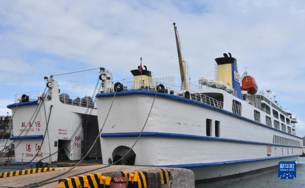 10月7日,运输旅客和货物的船舶停靠在海口秀英港码头。