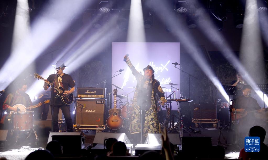 10月6日,内蒙古摇滚乐队“杭盖乐队”在蒙特勒(中国)爵士音乐节上演奏。