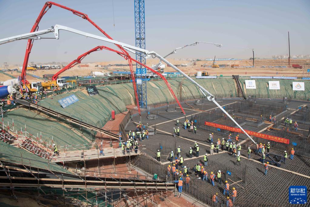这张2019年2月25日的资料照片显示的是埃及新首都中央商务区项目建设现场。