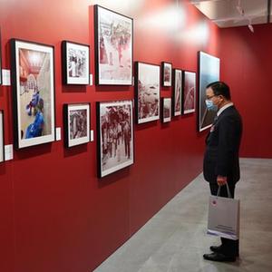 10月8日,在香港中央图书馆,嘉宾在参观展览。