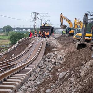 记者从南同蒲铁路昌源河大桥抢险现场了解到,10月8日21时20分,受强降雨影响中断行车的南同蒲铁路上行线(北向)实现抢通。目前,昌源河铁路桥下行线路的抢通工作仍在努力进行中。