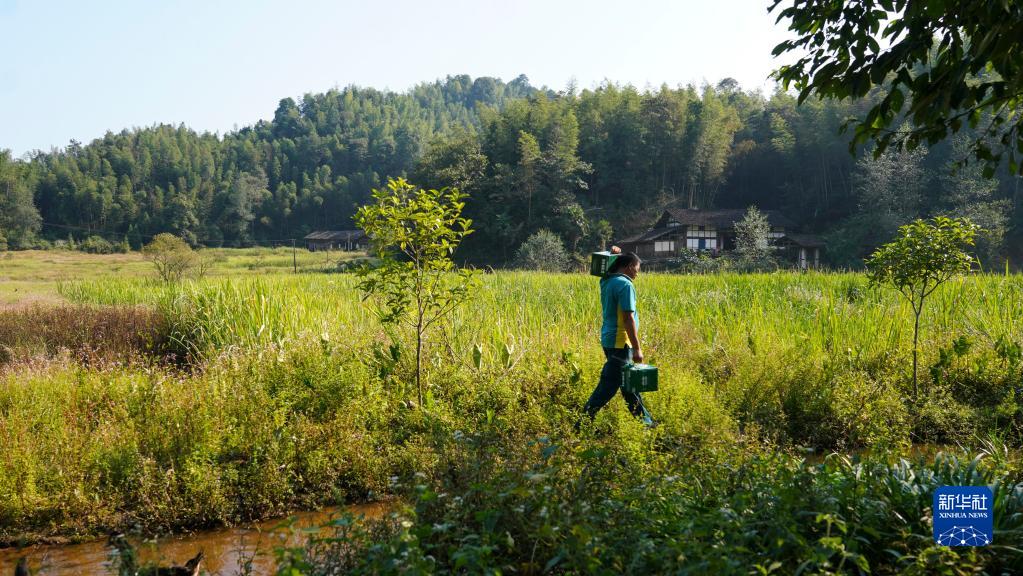 9月28日,双峰邮政所的邮递员吴文清走在送货途中。