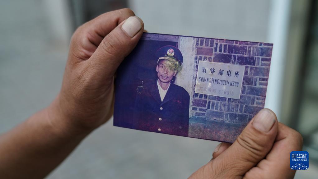 10月6日,双峰邮政所的邮递员吴文清展示当年父亲身穿邮递员制服的照片。