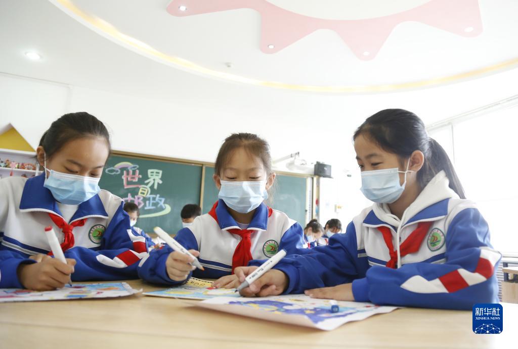 10月9日,河北省邢台市东牛角小学学生在“邮票我设计”主题活动中绘制邮票图案。