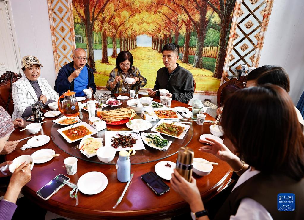 游客在永新村一户农家乐吃午饭(10月3日摄)。
