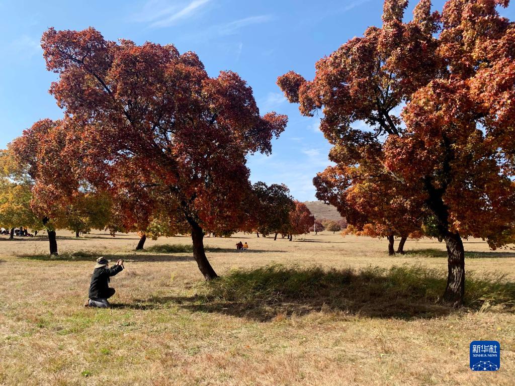 10月9日,摄影爱好者在科尔沁右翼中旗翰嘎利——五角枫旅游区内采风。