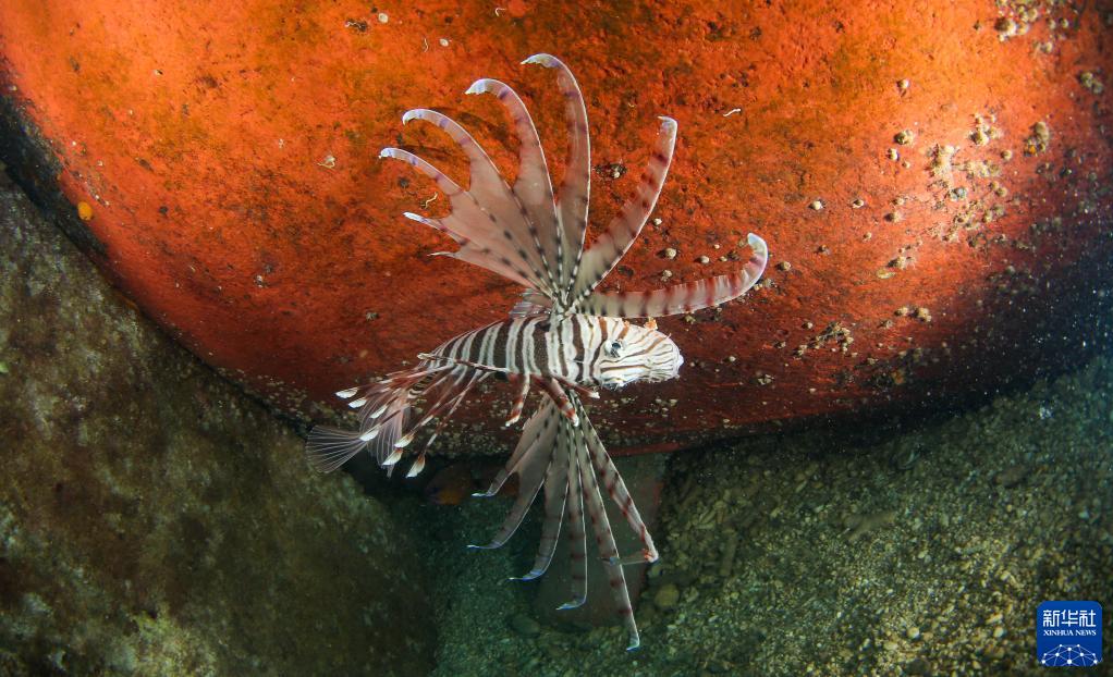 在分界洲岛海域,一条狮子鱼在海中游动(9月29日摄)。