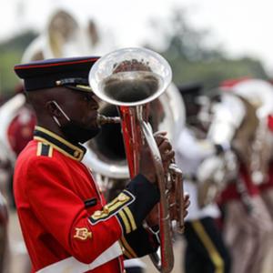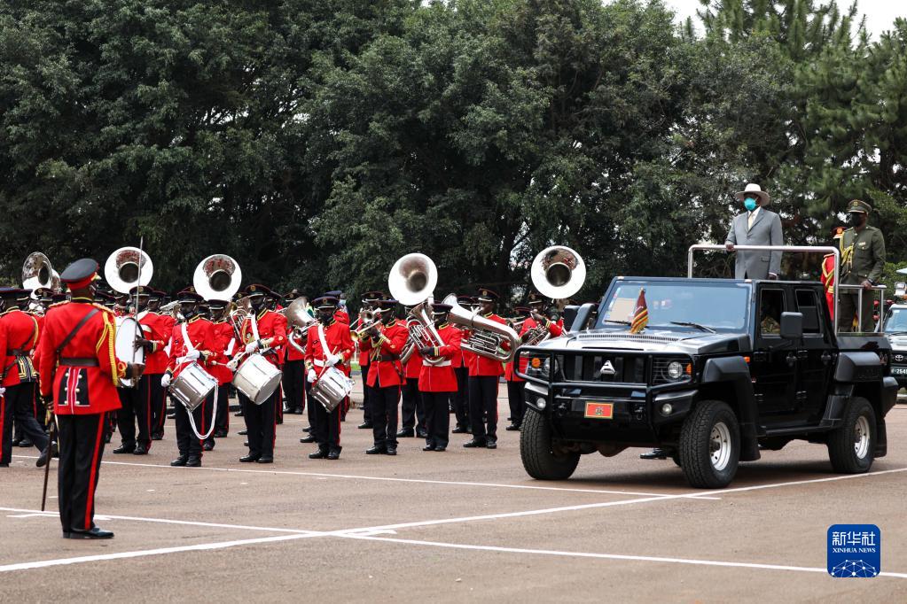 10月9日,乌干达总统穆塞韦尼(前右二)在首都坎帕拉出席独立日庆典活动。