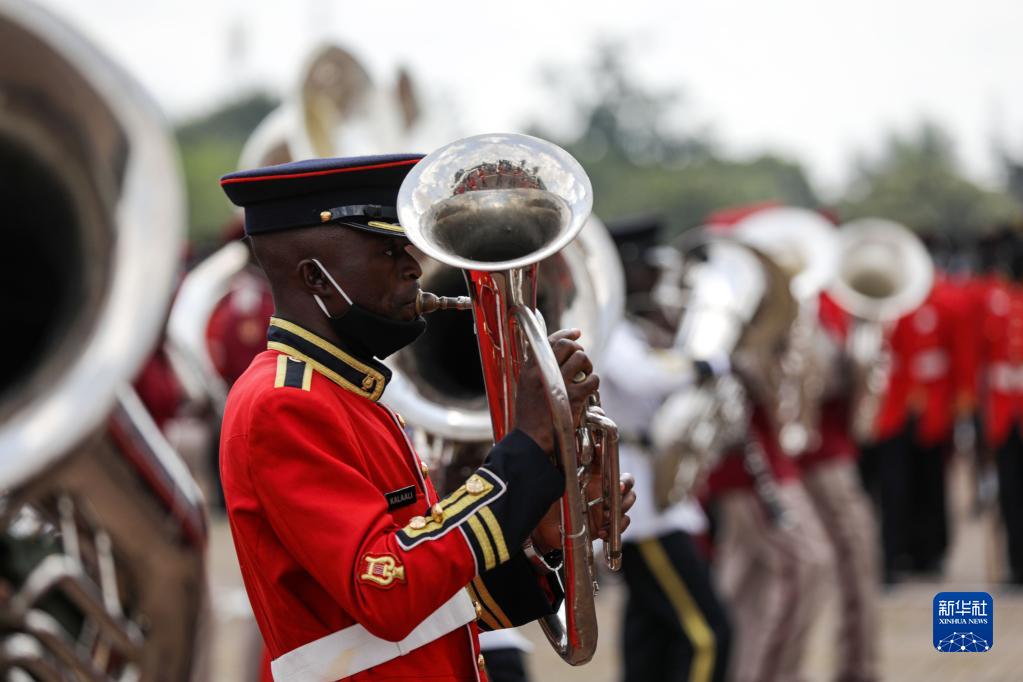 10月9日,乌干达人民国防军军乐队在首都坎帕拉参加独立日庆典活动。