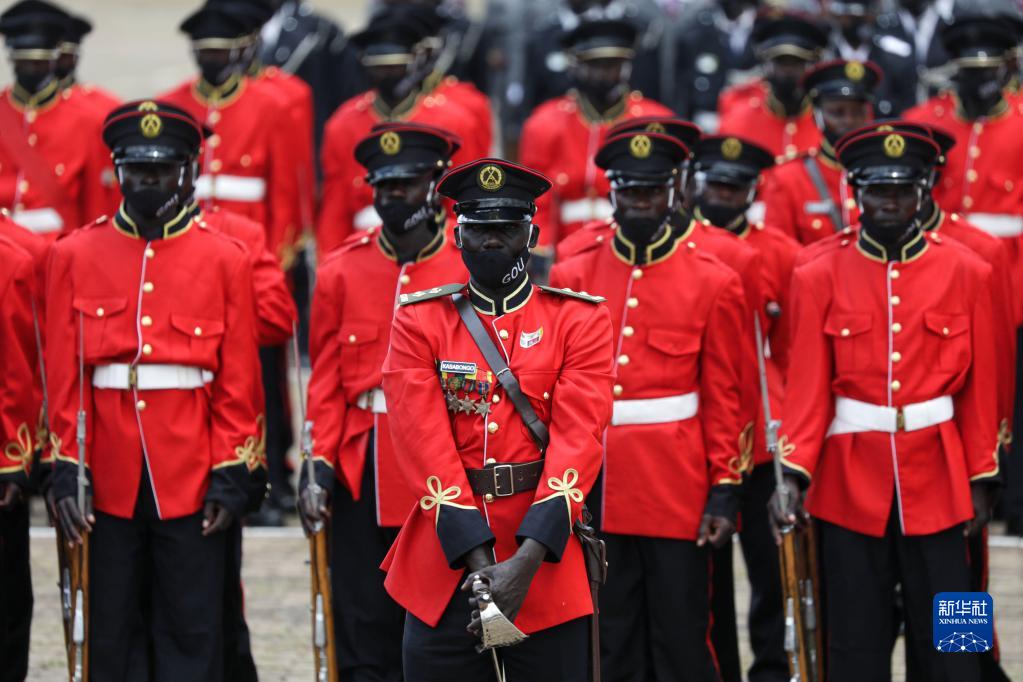 10月9日,乌干达人民国防军士兵在首都坎帕拉参加独立日庆典活动。
