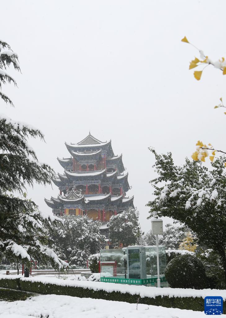这是10月10日拍摄的甘肃省平凉市崆峒区南山生态公园雪景。