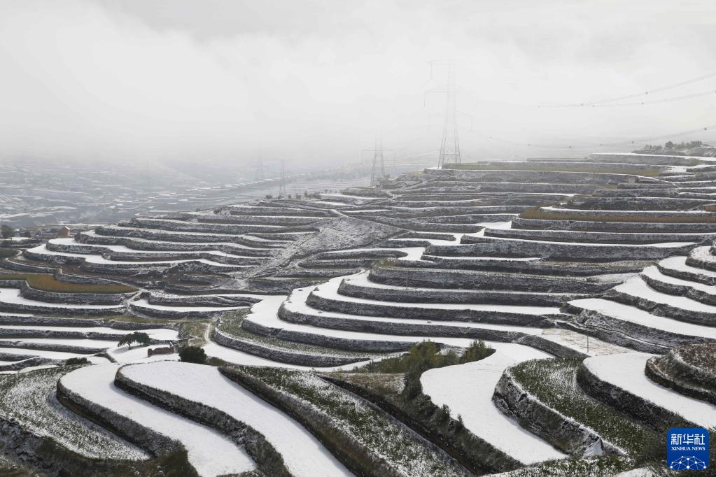 这是10月10日在甘肃省定西市安定区青岚乡拍摄的雪景。