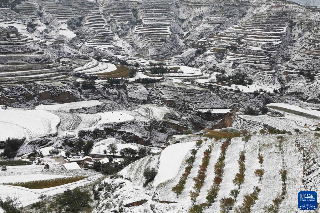 这是10月10日在甘肃省定西市安定区青岚乡拍摄的雪景。