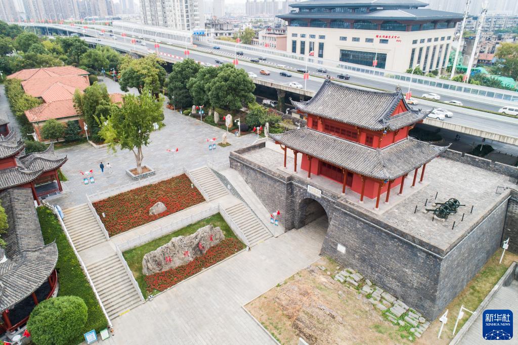 这是10月9日拍摄的位于武汉市武昌区的起义门(无人机照片)。