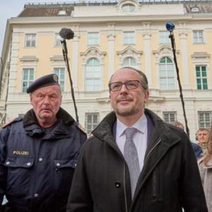 这是10月10日在奥地利维也纳拍摄的奥地利外长沙伦贝格(中)。
