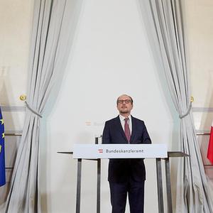 10月11日,奥地利总理沙伦贝格在维也纳就职后的新闻发布会中致辞。