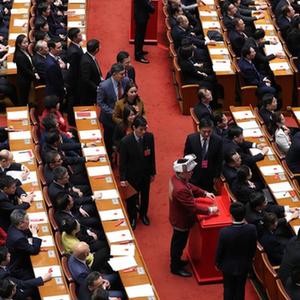 2018年3月11日,十三届全国人大一次会议在北京人民大会堂举行第三次全体会议。这是代表投票表决中华人民共和国宪法修正案草案。