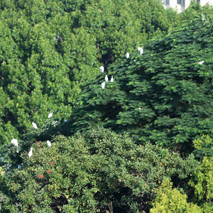 秋日时节,广西南宁市草木茂盛,碧水幽幽,吸引大量鸟类前来休憩繁衍。