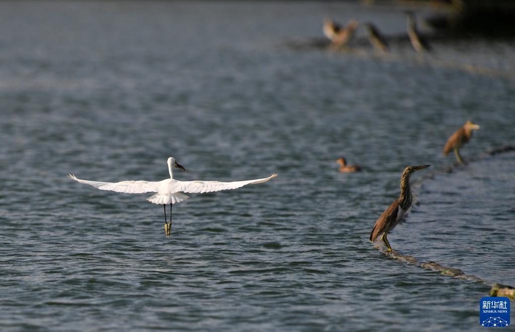 秋日时节,广西南宁市草木茂盛,碧水幽幽,吸引大量鸟类前来休憩繁衍。