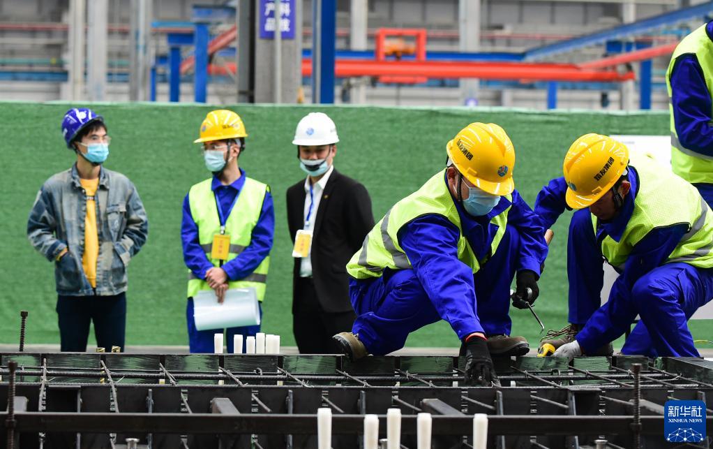 10月12日,产业工人在合肥市第三届装配式建筑职业技能大赛上进行模具组装操作。