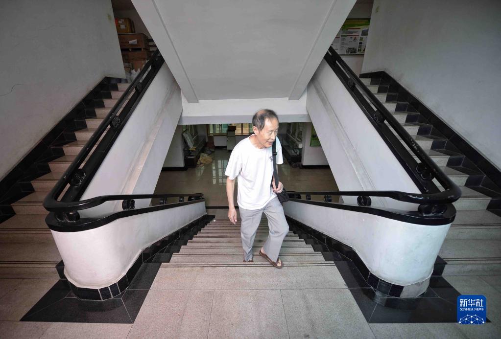 10月2日,印开蒲走向中科院成都生物研究所科研楼的办公室。新华社记者 刘坤 摄