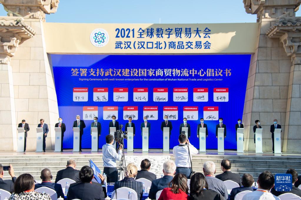 当日,2021全球数字贸易大会在湖北武汉开幕,来自约100个国家的驻华使节和商(协)会代表,以及上万名客商、专家学者线下参会。本次大会以“智联世界,货通天下”为主题,由湖北省人民政府主办,武汉市人民政府、湖北省商务厅承办。