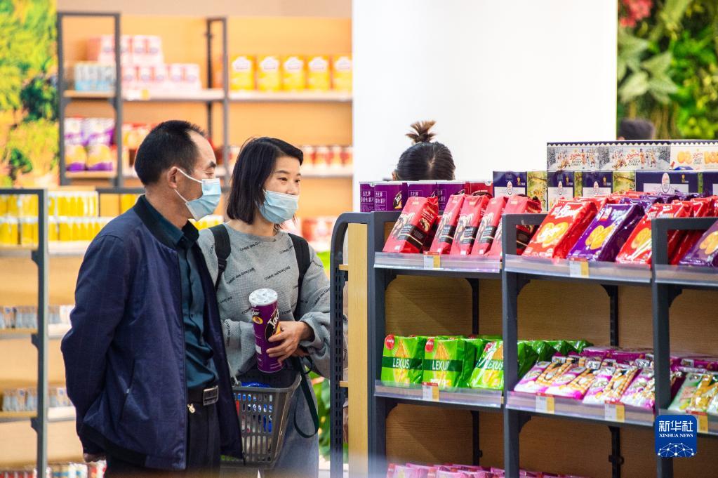 10月12日,参观者在选购进口商品。