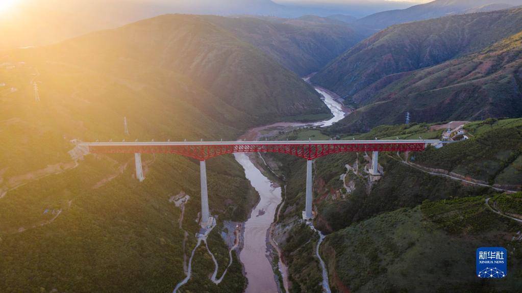 9月27日拍摄的中老铁路元江双线特大桥(无人机照片)。