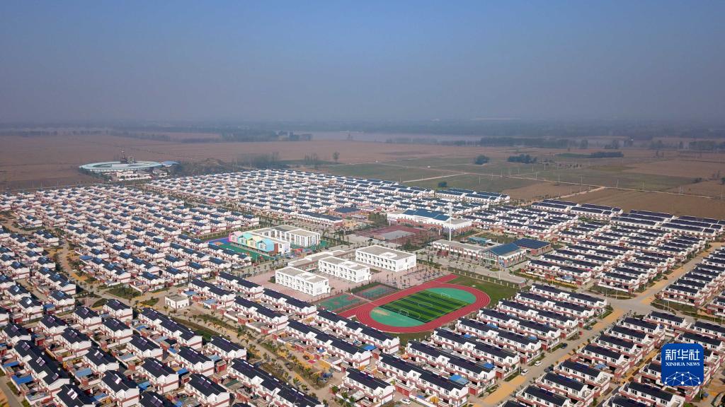 这是安置了6个自然村黄河滩区村民的菏泽市鄄城县六合社区(10月13日摄,无人机照片)。