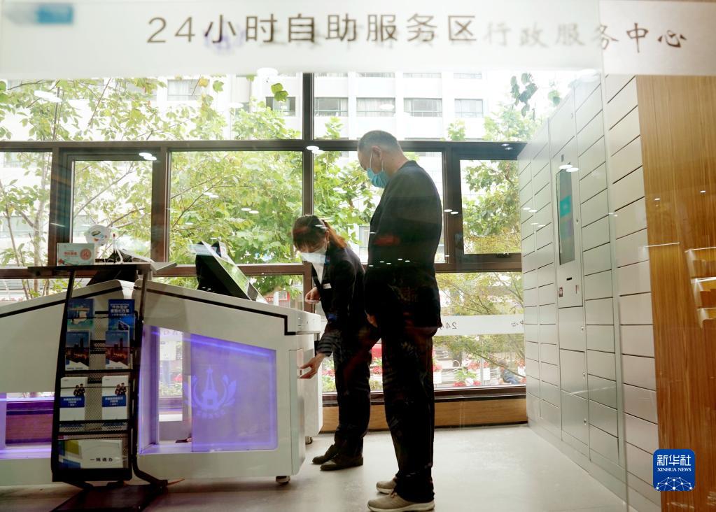 10月13日,上海市静安区行政服务中心的工作人员在帮助老年人申领“随申码·离线码”卡片。