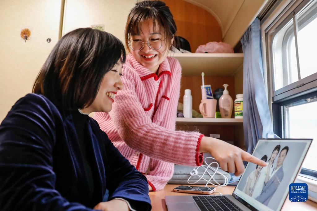 10月12日,火车医院医生李宛(左)与病房护士长张希在宿舍内交流。新华社记者 张玉薇 摄