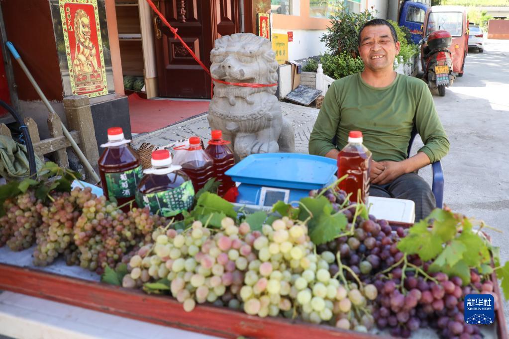 9月7日,在舟曲县大川镇土桥子村,村民摆摊售卖自家采摘的葡萄。
