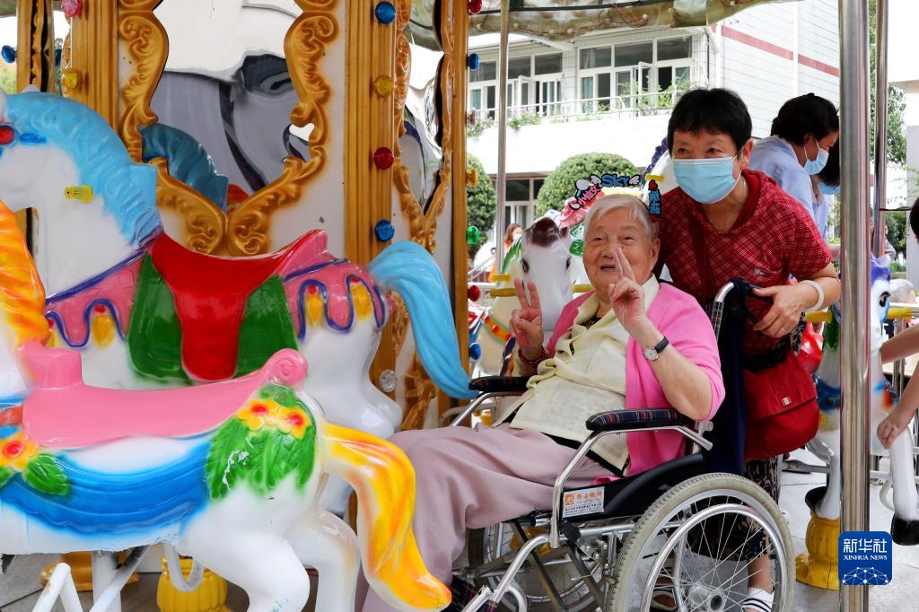 当日,一场趣味重阳游园会在上海市杨浦区社会福利院举行。旋转木马、小火车和可爱美拍照相屋等娱乐设施被搬进了福利院,给老人们带来欢乐。