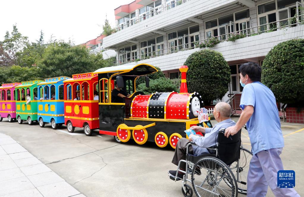 当日,一场趣味重阳游园会在上海市杨浦区社会福利院举行。旋转木马、小火车和可爱美拍照相屋等娱乐设施被搬进了福利院,给老人们带来欢乐。