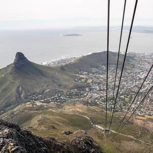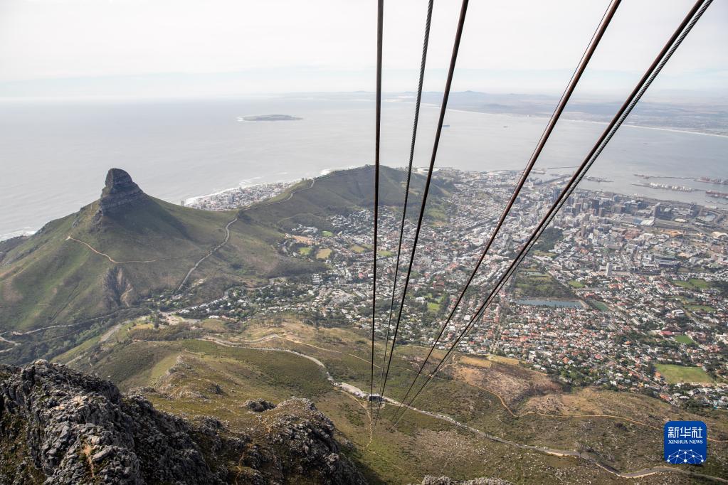 这是10月12日在南非开普敦桌山国家公园缆车上拍摄的开普敦市貌。