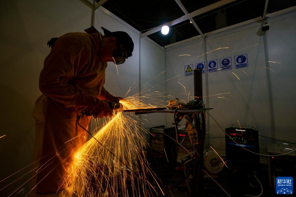 10月14日,选手参加第七届全国职工职业技能大赛决赛的焊工工种比赛。