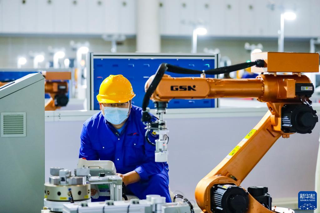 10月14日,选手参加第七届全国职工职业技能大赛决赛的工业机器人操作调整工工种比赛。