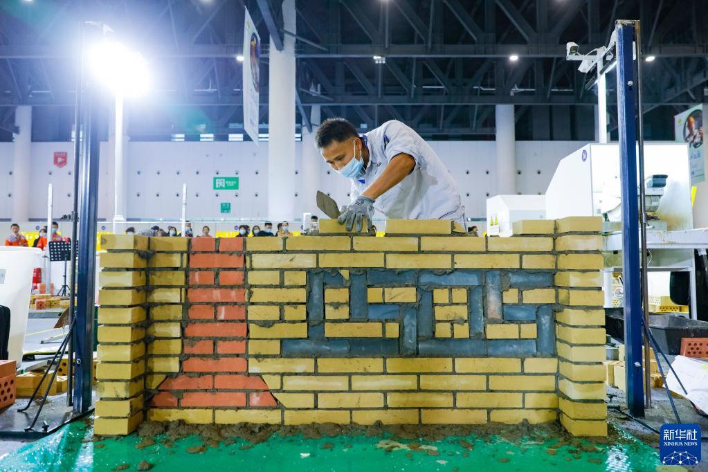 10月14日,选手参加第七届全国职工职业技能大赛决赛的砌筑工工种比赛。