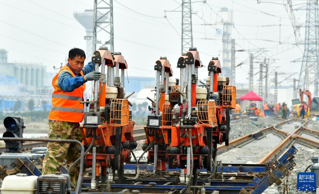 当日,经过中铁十四局集团1600余名建设者十多个小时连续奋战,邯黄铁路扩能改造工程渤海新区站19组道岔完成改造。