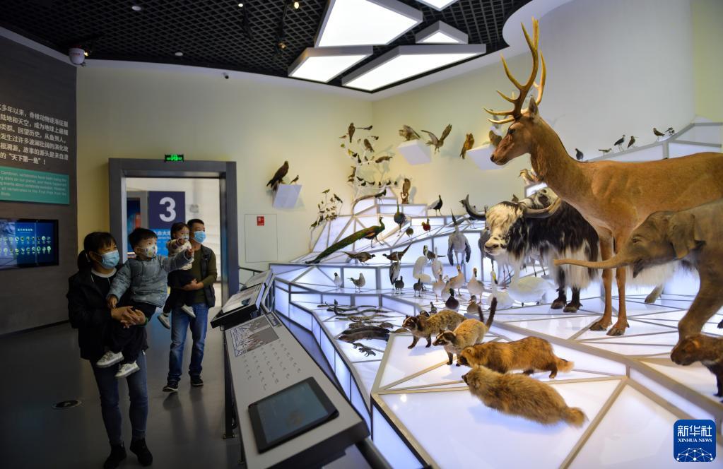 10月14日,家长带着小朋友在澄江化石地世界自然遗产博物馆参观。