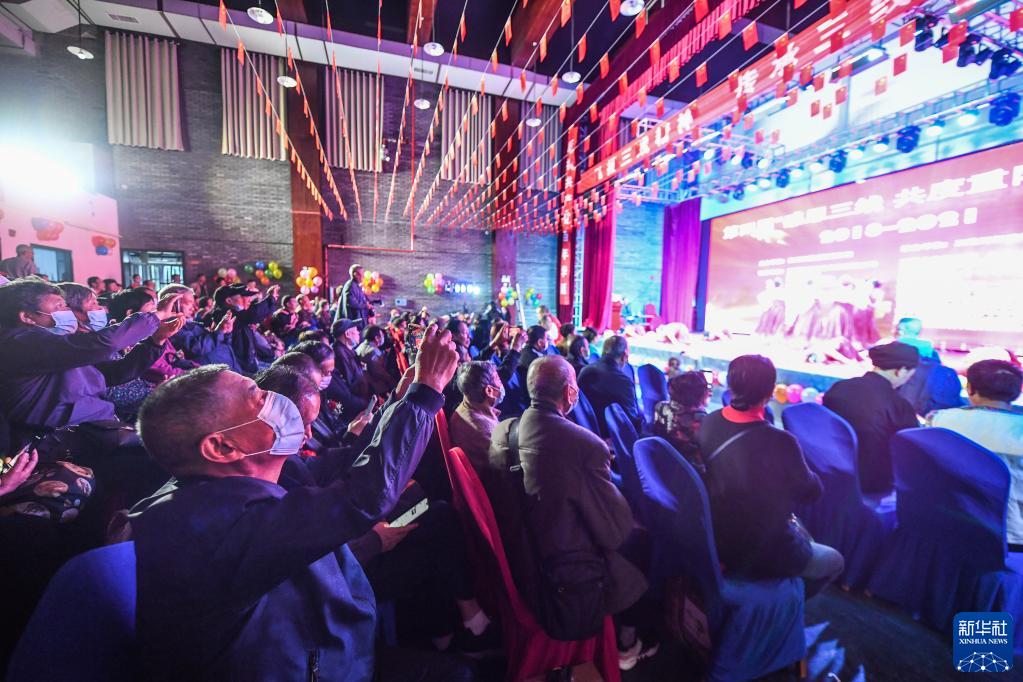 10月14日,老人在六盘水市钟山区贵州三线建设博物馆演播厅观看文艺演出。