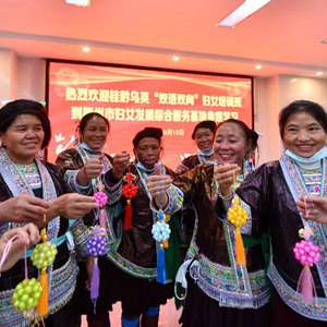 桂黔乌英苗寨因地处偏远,曾是脱贫攻坚的“硬骨头”。受经济条件、传统观念、地域环境等因素影响,乌英苗寨40岁以上的妇女几乎没有上过学。她们不识字,不会讲普通话,无法与外界沟通交流。2020年3月以来,在桂黔两地民宗妇联等部门的帮助下,乌英苗寨举办“我教妈妈讲普通话”“双语双向”培训班,聘请节假日返乡的大学生等为老师,为留守妈妈提供普通话、舞蹈、音乐等培训。截至目前,乌英苗寨“双语双向”普通话培训班已举办300多期,逐渐成为乌英妇女了解世界的桥梁。