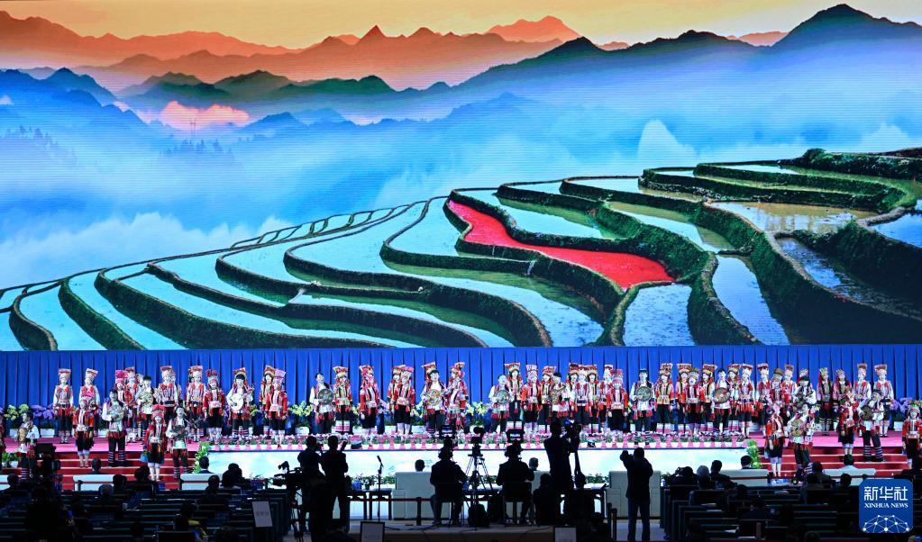 10月14日,2020年联合国生物多样性大会(第一阶段)生态文明论坛在云南昆明开幕。这是开幕式上的表演。